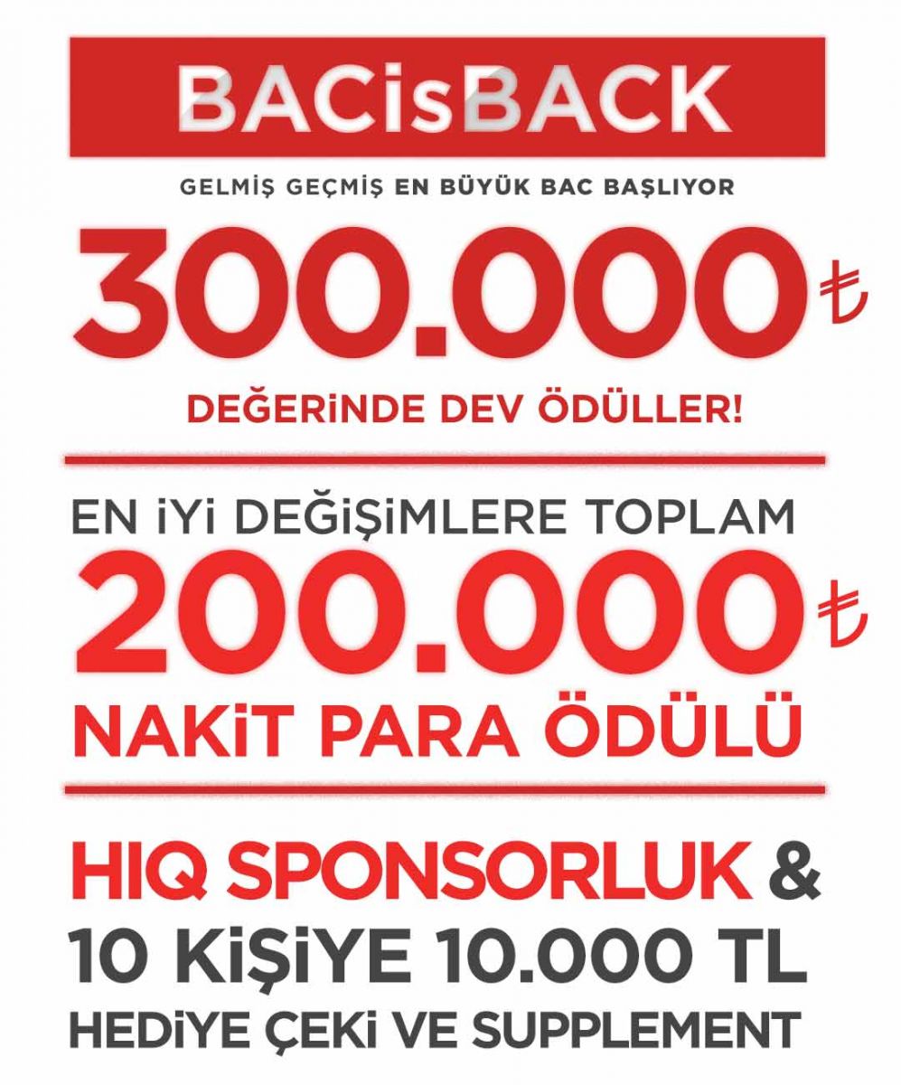 Merak etmeyin, bizler sizler için hedefleriniz doğrultusunda programlarınzı seviyelerinize göre hazırlıyoruz. BAC’de en kaslı değil 12 Haftalık süreçte en iyi değişimi yapan kazanacaktır. Burada kaybeden asla olmayacak, üç ay sürecin sonunda inanılmaz vücut değişimi yapmış olacaksınız ve hayalini kurduğunuz vücudun sahibi olacaksınız.