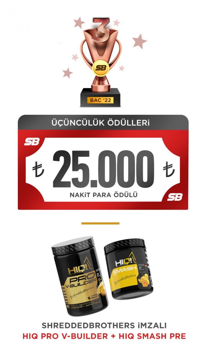 12 Haftanın sonunda gönderdiğiniz fotoğraflar panele yüklendikten sonra ‘’SHREDDED BROTHERS’’ tarafından ön eleme, yarı final ve final olmak üzere bizler tarafından en iyi vücut değişimi yapan ilk 5 öğrencimiz BAC büyük ödülü, sonraki 10 öğrenci HIQ Hediye çeki kazanacaktır.